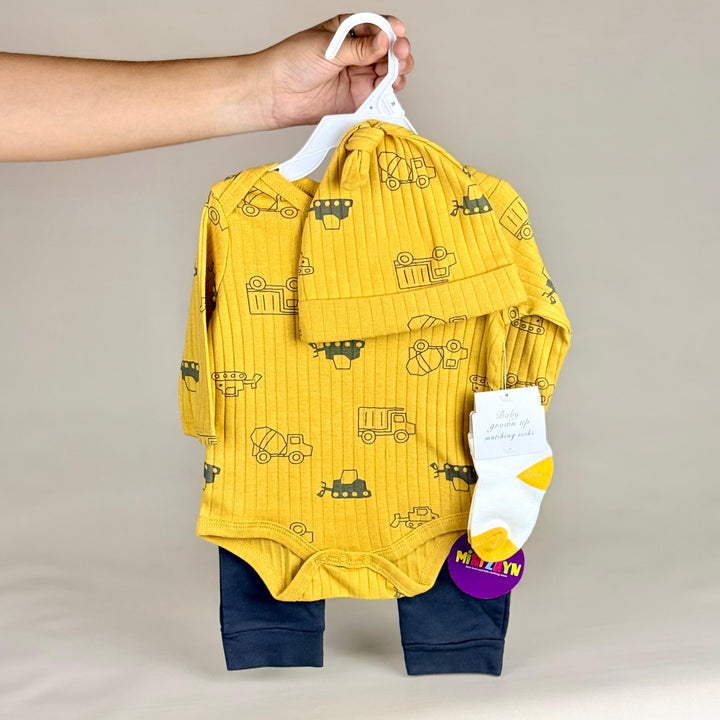 Product: 1 x bodysuit, 1 x trouser, 1 x cap, 1x pair of socks