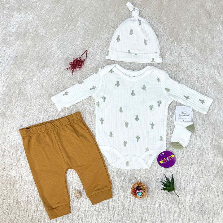Product: 1 x bodysuit, 1 x trouser, 1 x cap, 1x pair of socks