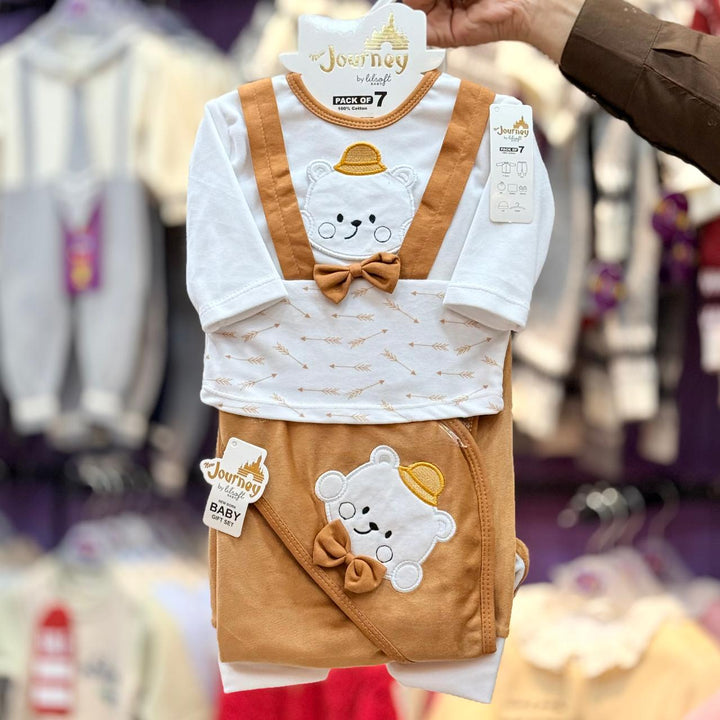 Product: 1 x T shirt, 1 x pant, 1 x cap, 1 x bib, 1 x pair of booties,1 x blanket