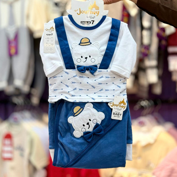 Product: 1 x T shirt, 1 x pant, 1 x cap, 1 x bib, 1 x pair of booties,1 x blanket