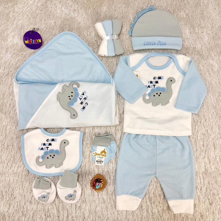 Product: 1 x shirt, 1 x trouser, 1 x cap, 1 x bib, 1 x pair of booties , 1 x pair of mittens, 1 x wrapping sheet, 3 x Wash Cloths