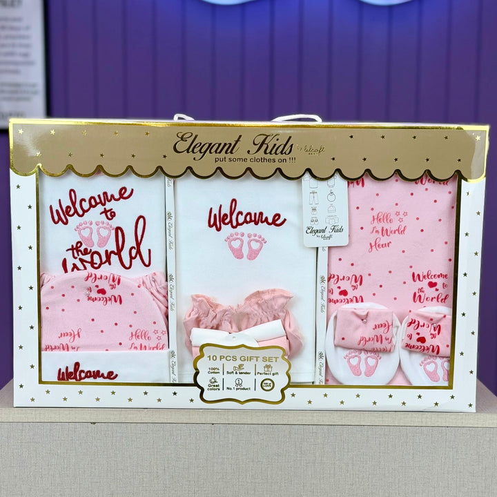Product: 1 x Shirt, 1 x trouser, 1x bodysuit , 1 x Bib, 1 x Cap , 2 x booties, 1x mittens, 3x wash clothes