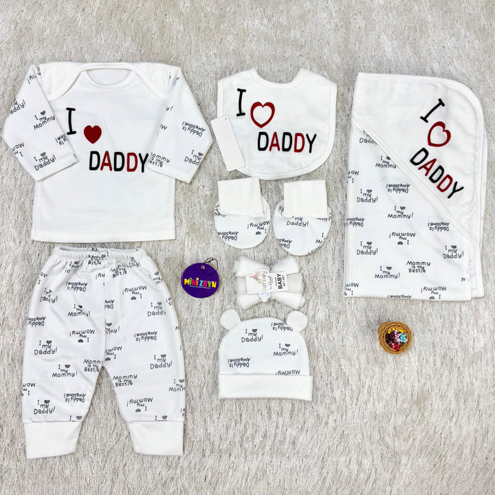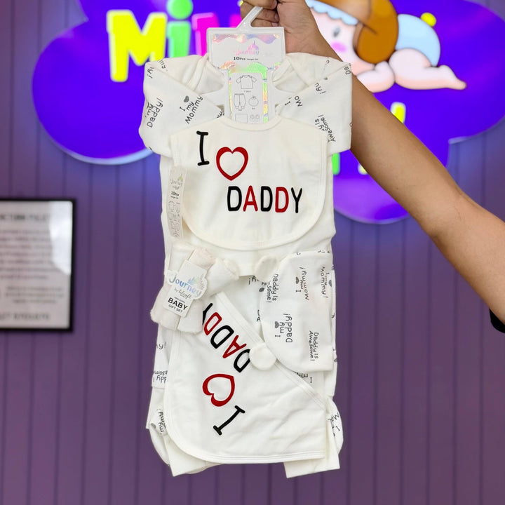 Product: 1 x Shirt, 1 x trouser 1 x wrapping sheet , 1 x Bib, 1 x Cap , 2 x booties , 3x wash clothes.