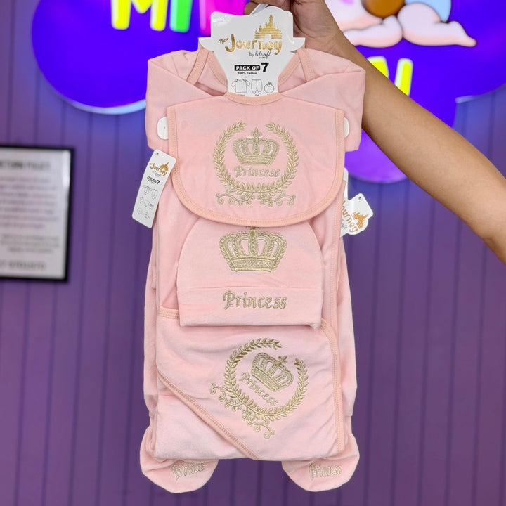 Product: 1 x shirt, 1 x trouser, 1 x cap, 1 x bib, 1 x pair of booties , 1 x wrapping sheet,